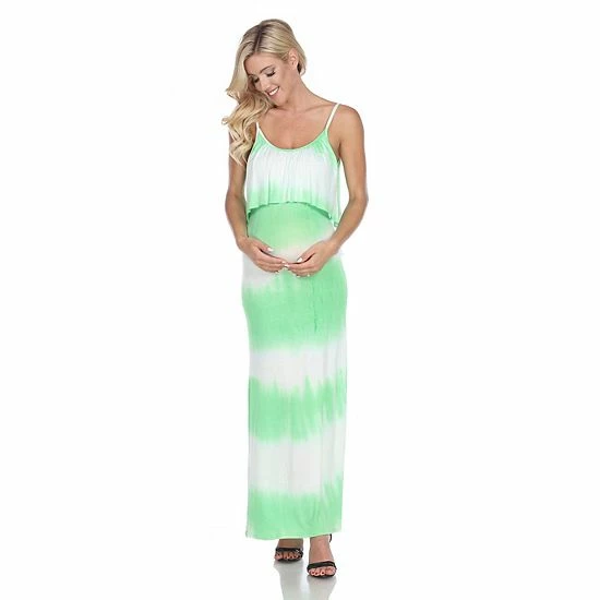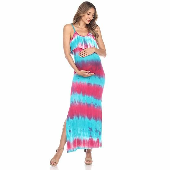 This maternity tie-dye maxi dress from White Mark features a layered front and spaghetti straps for a summer look you’ll love.