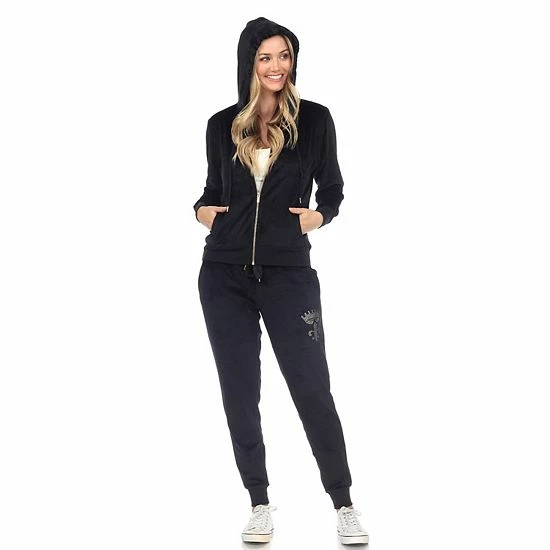 The rhinestone accents and velour construction gives this women’s White Mark track suit a casual look you’ll love.